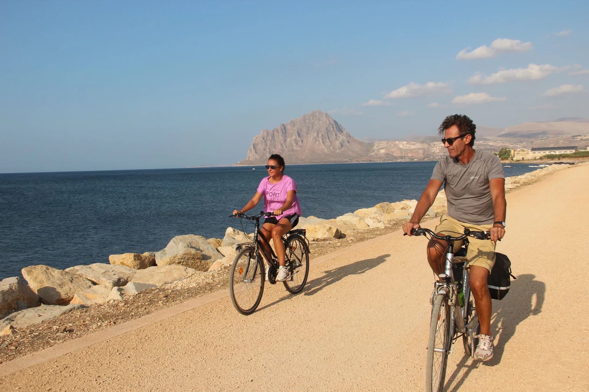 Oggi potrete scegliere tra due opzioni di itinerario. La prima opzione prevede l’ascesa ad Erice, borgo medioevale di origine Elima situato a 750 metri sul mare sopra la città di Trapani, raggiungibile a scelta direttamente in bicicletta con un’impegnativa salita di 7,5 km (+1280 m) o in funivia, portandovi la bici al seguito. Ad Erice potrete pedalare tra i vicoli medioevali e scoprire gli incantevoli angoli ed i suggestivi panorami sull’arcipelago delle Egadi. Dopo la visita di questo splendido gioiello incastonato sul Monte di San Giuliano, che domina dall’alto tutta la costa della Sicilia Occidentale, affronterete la discesa verso Trapani, potendo ammirare lungo il percorso i meravigliosi scenari sul Mar Tirreno, l’arcipelago delle Egadi e le coste della provincia di Trapani. Raggiungerete quindi Custonaci con le sue cave di marmo, la suggestiva “Grotta mangiapane”, usata come location per il presepe vivente durante le festività natalizie ed infine la Riserva Naturale di Pizzo Cofano e Cornino, dove potrete godervi una pausa con un bel bagno ristoratore. Da qui, percorrendo una strada costiera per lo più chiusa al traffico veicolare raggiungerete la Tonnara di Bonagia prima di rientrare a Trapani. Arrivati a Trapani dopo un suggestivo tour per il centro storico della città con i suoi vicoli, strade e palazzi monumentali, rientro in hotel. In alternativa potrete scegliere di avere una giornata di relax a Favignana. In bici vi dirigerete verso il porto dove, dopo aver convalidato i vostri voucher presso la biglietteria, vi imbarcherete sul traghetto per Favignana, che raggiungerete dopo circa 45 minuti di navigazione. Nel caso riusciate ad avere tempo a disposizione prima di imbarcarvi, potete fare un interessante visita al porto peschereccio di Trapani dove, con un po’ di fortuna, potrete assistere alla classica “abbanniata”, grida con cui viene fatta l’asta per la vendita del pesce direttamente dal peschereccio appena rientrato. Raggiunta Favignana potrete effettuare il periplo dell’isola, che vi permetterà di apprezzare le bellezze naturali (insenature e mare cristallino, cave di tufo) ed al contempo gustarvi una giornata di relax al mare; prima di imbarcarvi sul traghetto per ritornare a Trapani potrete visitare il Museo della Tonnara, con le sue testimonianze di pesca del passato.
